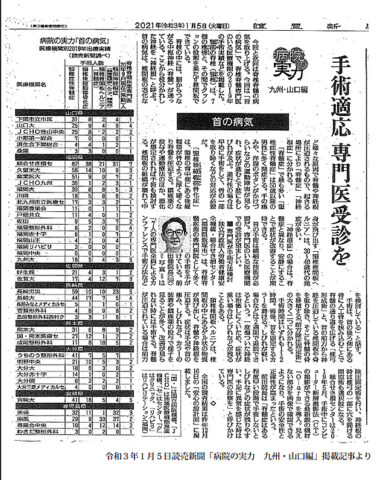 前田院長への取材記事が読売新聞に掲載されました。